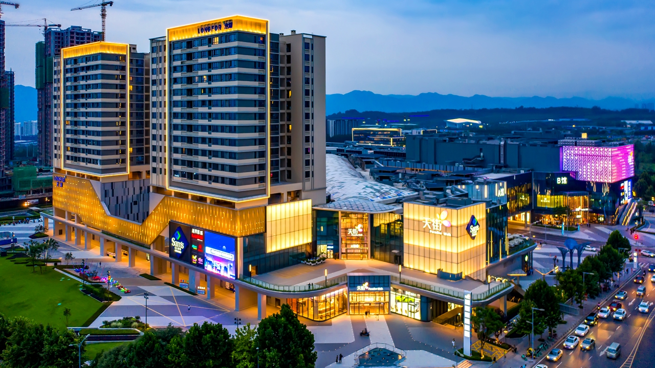 重慶禮嘉天街亮化方案采用動(dòng)靜相結(jié)合的方式,為城市的夜景增添了亮麗的色彩!馳玖照明提供了從設(shè)計(jì)、預(yù)算、施工、調(diào)試一整套服務(wù)。